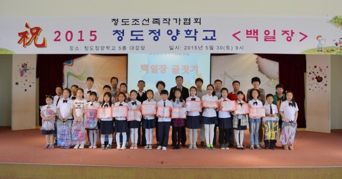 내빈 대표의 축하발언에 이어 정양학교에서 온 2명 어린이가 학생 대표로 축사를 올렸다. 두 어린이가 “선생님, 수고 많으셨습니다.”고 축사를 마무리할 때 장내는 우뢰와 같은 박수갈채가 터져나왔다.