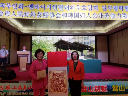 한국 부인회(회장 조태임)가 1일 옌타이시를 방문하여 옌타이시 인민대외우호협회(회장 장주샤)와 업무협력협약을 체결하고 앞으로 중·한 양국의 부녀자, 청소년의 권익향상과 건전한 소비풍토 조성을 통한 ‘행복한 사회 만들기’에 공동으로 노력하기로 했다.