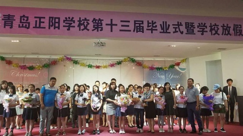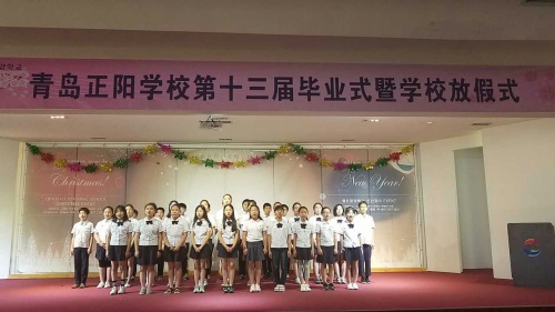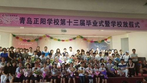 칭다오 정양학교 제13기 초등부 졸업식이 3일 정양학교 5층 대강당에서 성대하게 진행되었다. 2016년 여름방학식을 겸한 이날 행사에는 초등학교 6학년 38명 졸업생과 학부모 50여 명 그리고 전교 사생 400여 명이 참가하였다.