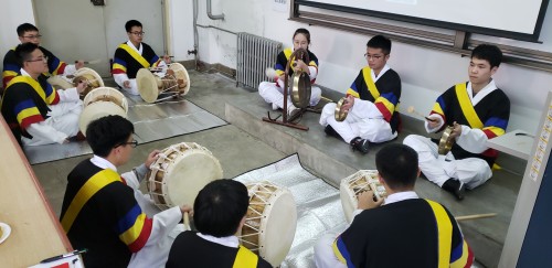 사진설명: 한글날 기념 축하 잔치 공연을 하고 있는 루둥대학교 사물놀이 팀