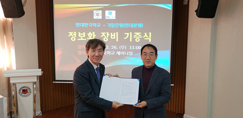 기업은행(중국)유한공사 옌타이분행(조한승 분행장)에서 옌타이한국학교(김창은 교장)에 정보화 장비를 기증하는 행사가 지난 12월 26일 오전 옌타이한국학교 2층 세미나실에서 진행되었다.